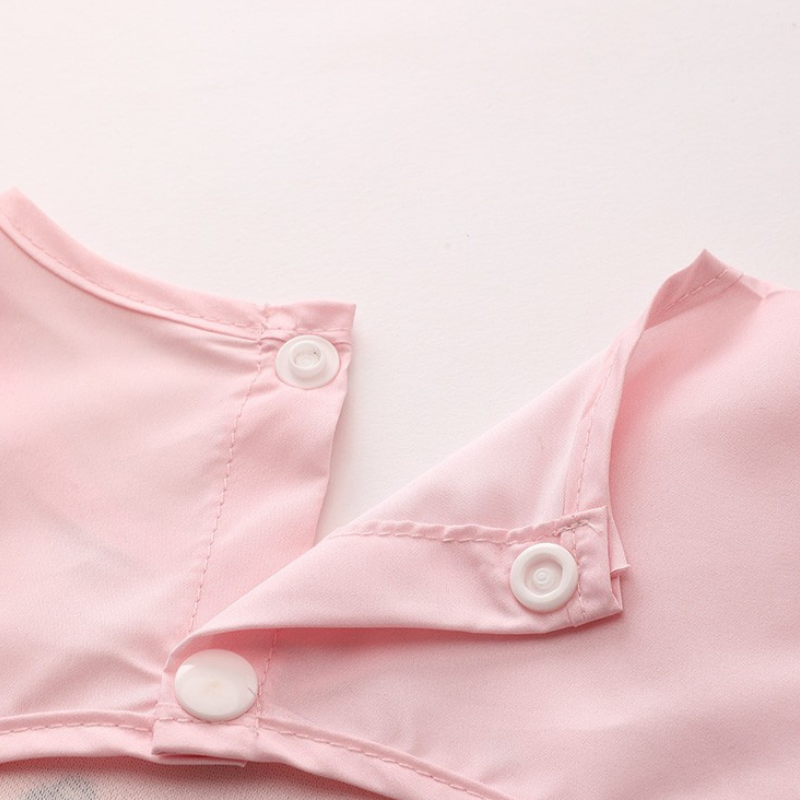 Fecho ajustável: Dois botões de pressão permitem um ajuste seguro e confortável ao pescoço do bebé.