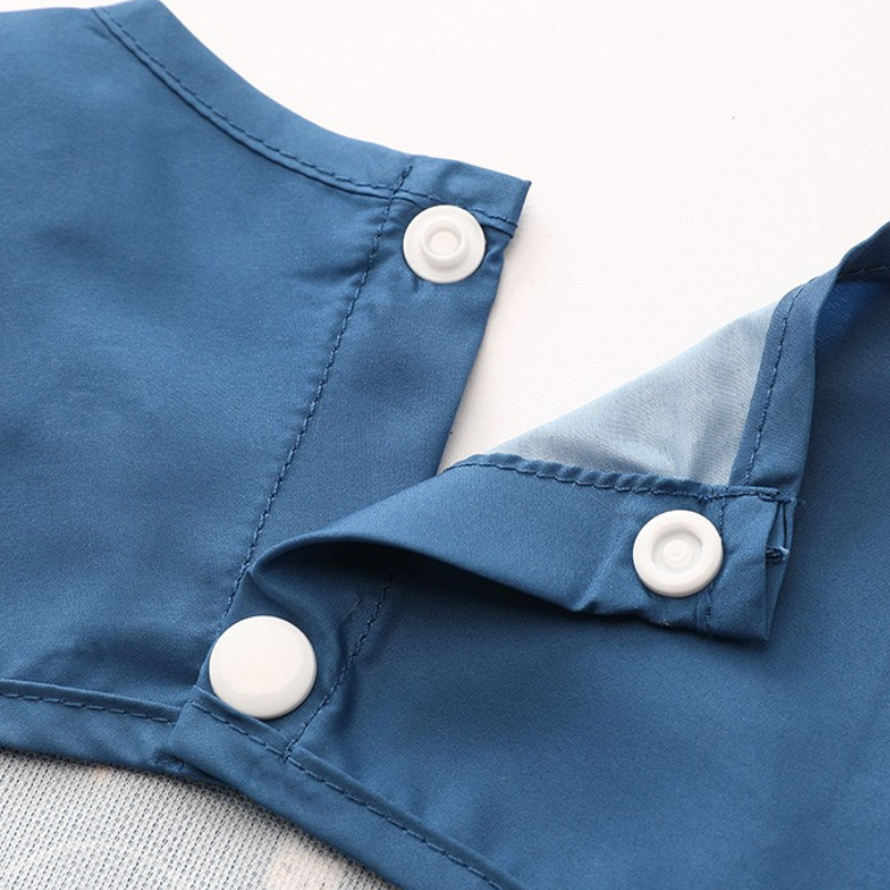 Fecho ajustável: Dois botões de pressão permitem um ajuste seguro e confortável ao pescoço do bebé.