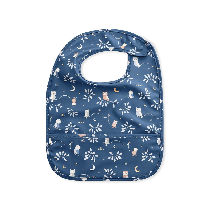 O bolso frontal prático recolhe migalhas e restos de comida, protegendo a roupa do bebé durante as refeições. Graças ao fecho com molas de pressão, ajusta-se facilmente ao pescoço da criança, acompanhando o seu crescimento com conforto e segurança.