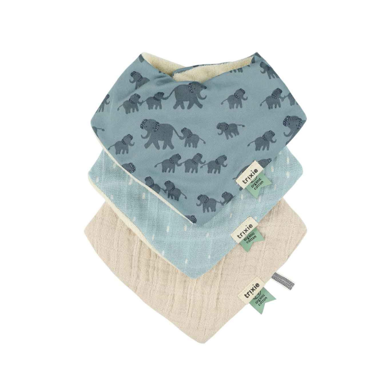 Este conjunto de 3 bandanas para bebé é a solução perfeita para manter as roupas do teu pequeno sempre limpas, seja durante a dentição, baba ou regurgitação.