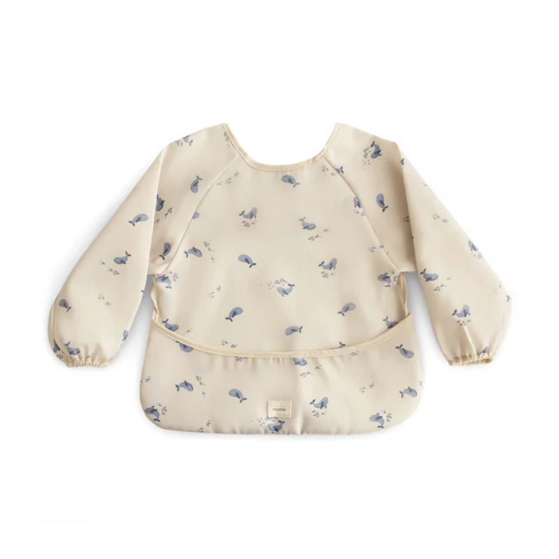 Com o seu estampado de baleias nadando graciosamente, este babete oferece proteção 360º com mangas integradas e um bolso extra-largo para capturar todos os respingos de comida e líquidos. Perfeito para pequenos marinheiros em refeições, sessões de pintura e todas as brincadeiras aquáticas em terra firme!
