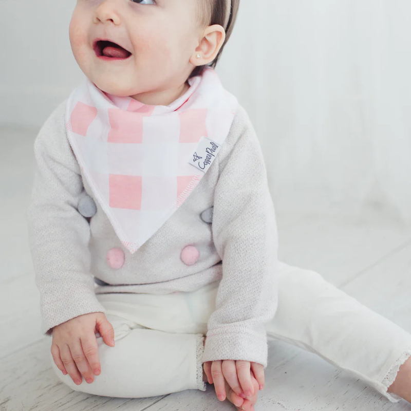 Pack de 4 babadores-bandana Copper Pearl padrão Atwood. Algodão premium absorvente e fleece macio. Ajustáveis dos 0 aos 36 meses. O acessório de estilo perfeito para vestir o bebé a rigor na estação.