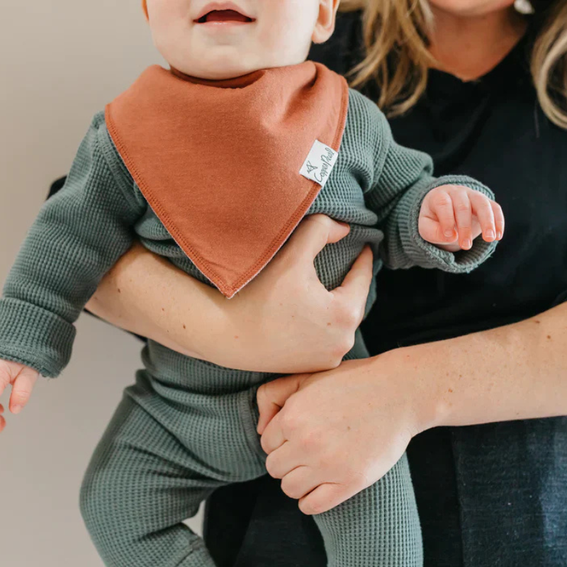 Pack de 4 babadores-bandana Copper Pearl padrão Atwood. Algodão premium absorvente e fleece macio. Ajustáveis dos 0 aos 36 meses. O acessório de estilo perfeito para vestir o bebé a rigor na estação.