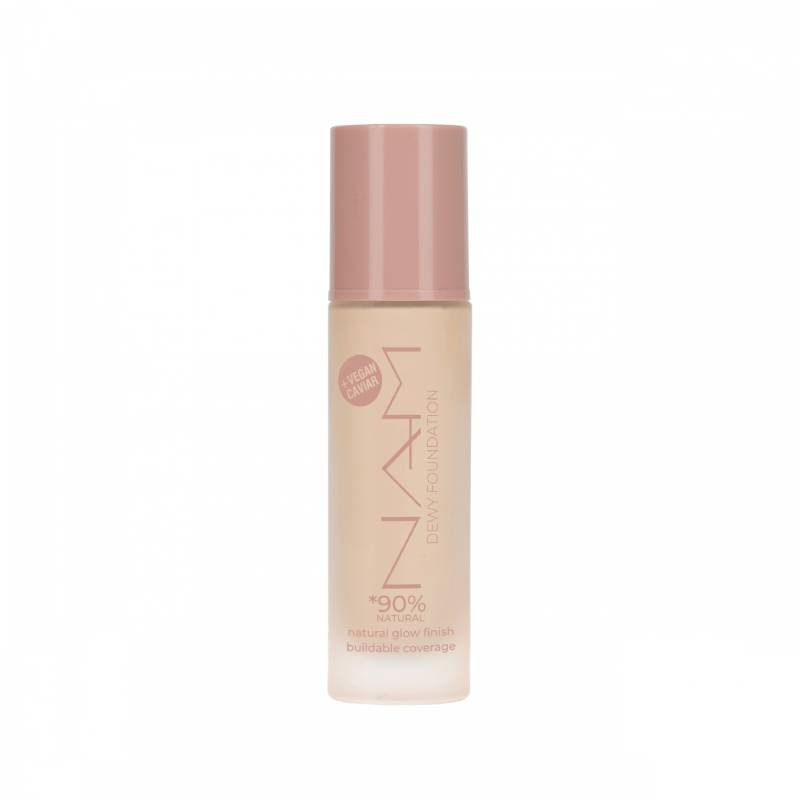 NAM Cosmetics Fluid Dewy Foundation 04W 30ml é uma base luminosa que infunde hidratação e sincroniza com a pele para um brilho saudável.