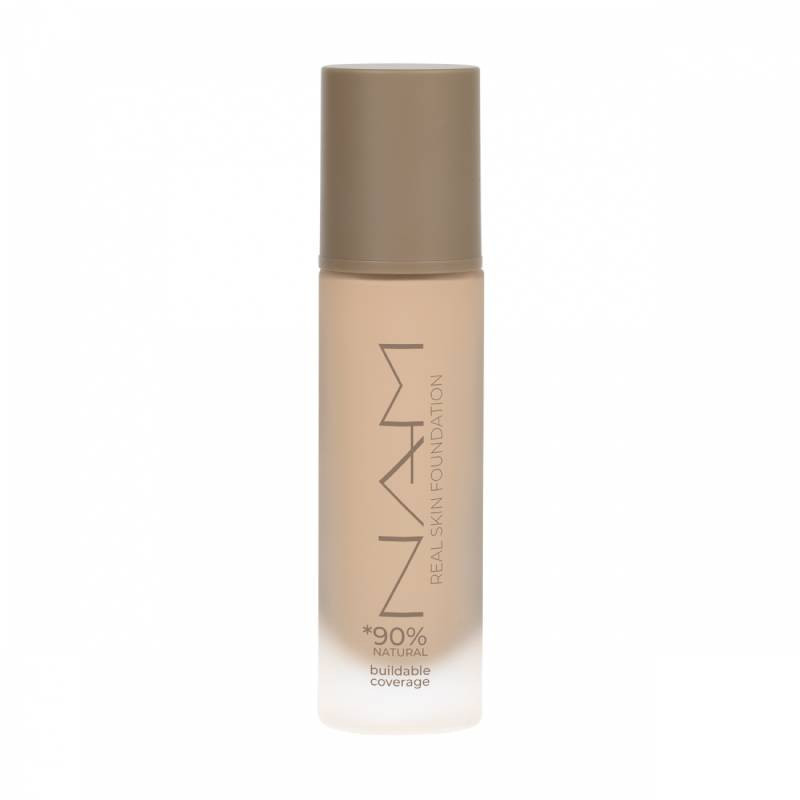 NAM Cosmetics Real Skin Foundation 05 30ml é uma base fluida para pele normal a mista.