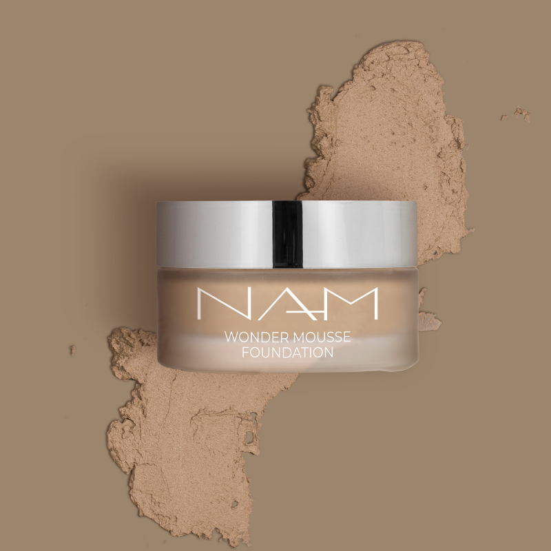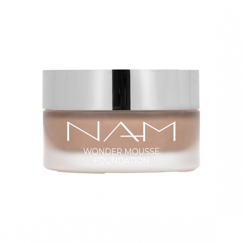 Esta base NAM Wonder Mousse Foundation com textura mousse oferece uma cobertura perfeita e adapta-se ao teu tom de pele. Multifuncional, atua como base, corretor e pó, garantindo uma pele uniforme e radiante o dia todo.