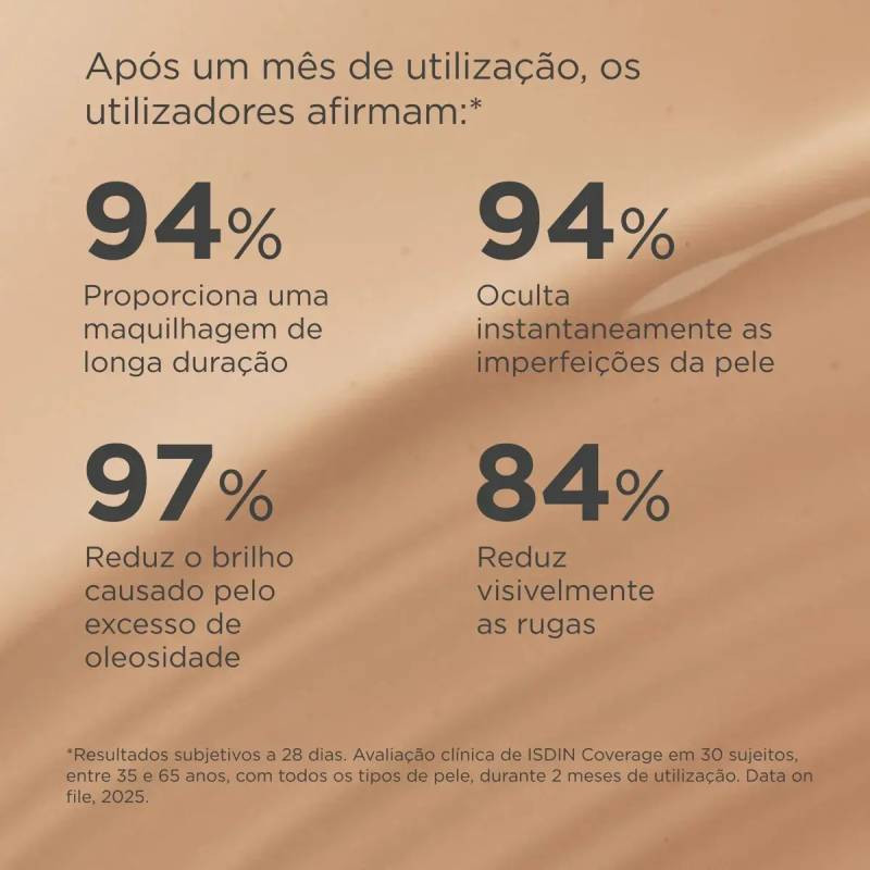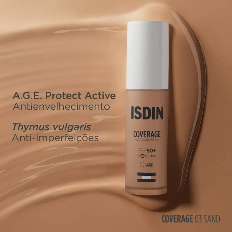 Para peles com tons quentes e dourados, chega a tonalidade Sand da revolucionária base ISDIN Coverage SPF 50+. Esta versão preserva todos os benefícios da fórmula original – proteção solar de amplo espetro, ação antienvelhecimento e controlo de brilho – com uma cor pensada para quem procura um tom quente e natural.