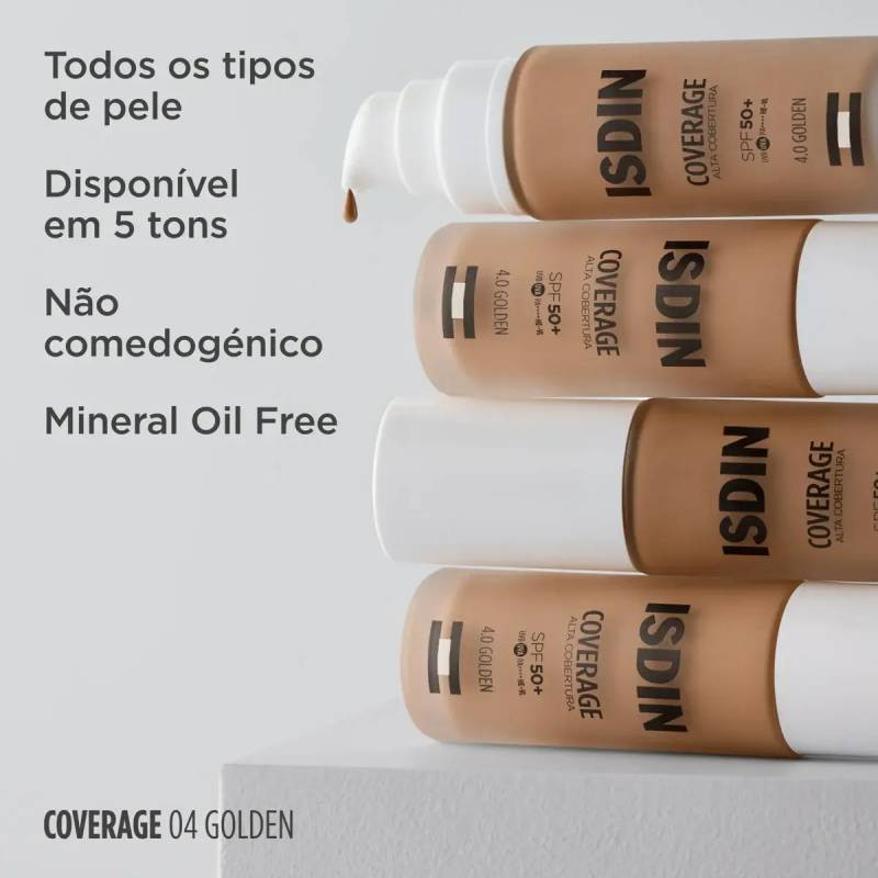Para peles que brilham com um calor dourado, apresentamos a tonalidade Golden da inovadora base ISDIN Coverage SPF 50+. Esta versão mantém toda a eficácia da fórmula original – com proteção solar de amplo espetro e ação antienvelhecimento – agora enriquecida com um subtil glow que realça a luminosidade natural da sua pele.