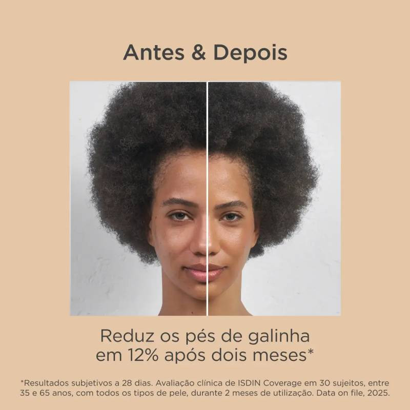Para um bronzeado natural e luminoso em qualquer altura do ano, apresentamos a tonalidade Bronze da base ISDIN Coverage SPF 50+. Esta versão oferece a mesma proteção solar de alta eficácia e os benefícios antienvelhecimento da fórmula original, com uma cor quente e profunda que evoca um aspecto saudável e radiante.