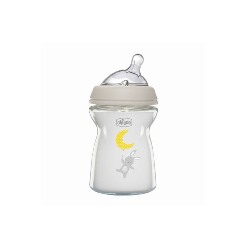 Chicco NaturalFeeling Biberão Vidro Coelho +0M é um biberão com tetina de silicone suave, semelhante ao peito materno que facilita a transição entre o peito e o biberão.