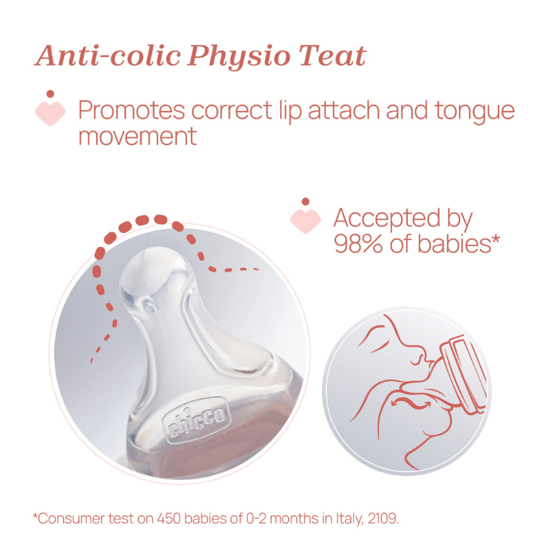 - Tetina macia que imita a pele: A Tetina Physio em silicone com acabamento Soft Sense é extra macia e aveludada, promovendo uma pega correta e uma sucção natural.
