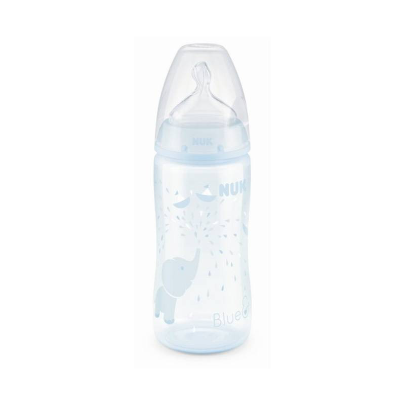 Nuk First Choice Biberão Silicone Blue 0-6M 300ml é perfeito para os primeiros meses de vida, devido à sua aproximação e semelhança com o mamilo da mãe durante a amamentação.