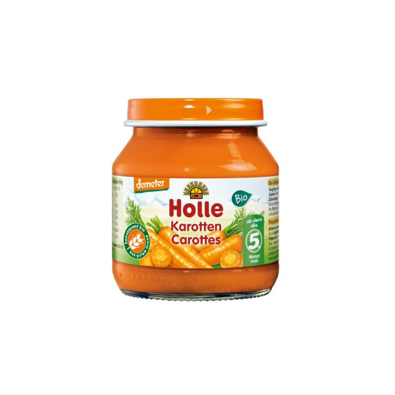 Holle Bio Puré Cenoura +5M 125g é um puré de cenoura para bebés a partir dos 5 meses.