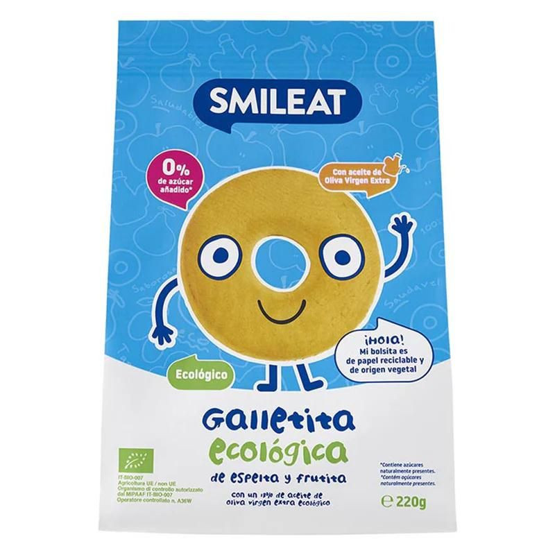 Smileat Bolachas Bio de Espelta e Fruta +10M 220g é um snack de espelta, fruta e azeite extra virgem para bebés a partir dos 10 meses.