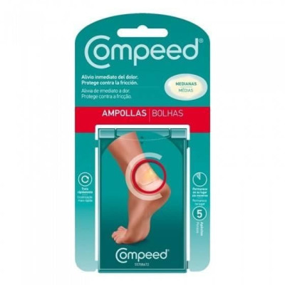 Compeed Penso Bolhas Médias x10 absorve o excesso de humidade e fornece um almofadado protetor, proporcionando um alívio imediato da dor e condições ideais de cicatrização para bolhas nos pés.
