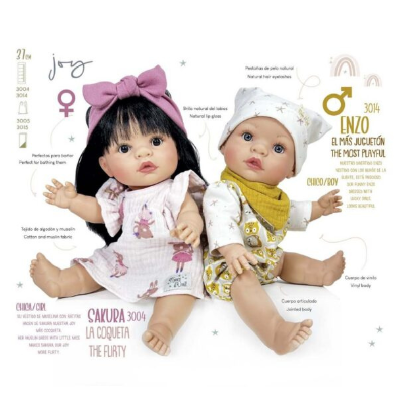 O Boneco Romeo da coleção Joy by Nines d'Onil mede 37cm e é anatomicamente correta, com um corpo em vinil de alta qualidade. Projetada para ser uma companhia perfeita, é articulada, adequada para o banho e ideal para promover o jogo simbólico e o desenvolvimento emocional em crianças a partir dos 3 anos.