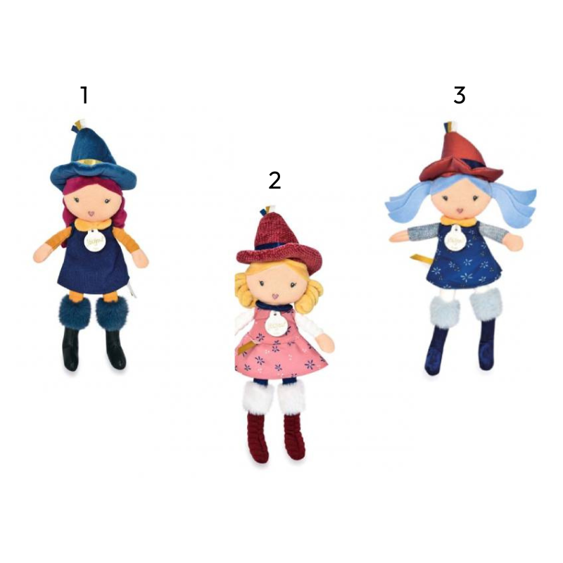 A coleção Les Gentilles Sorcières da Jolijou traz para o mundo infantil o encanto das bruxinhas bondosas com um toque de mistério. Com 24 cm de altura, estas bonecas de tecido são concebidas para estimular a imaginação através da descoberta e da surpresa.