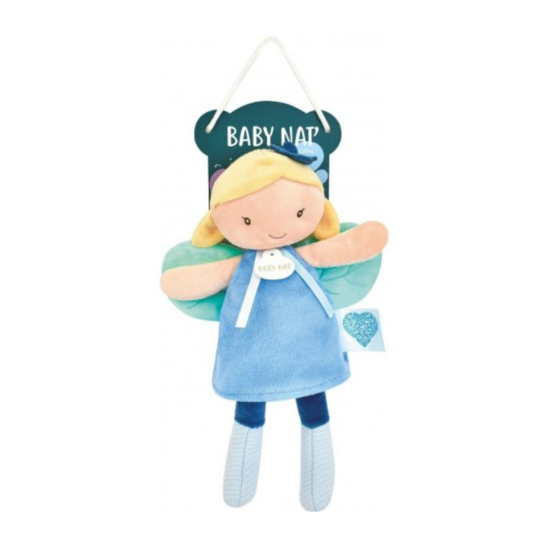 Boneca Fada Gaia Baby Nat. Boneca interativa com QR code na roupa que dá acesso a histórias áudio. Feita de materiais macios e cores suaves. Perfeita para brincadeiras e aconchego desde o nascimento. Lavável a 30°C.
