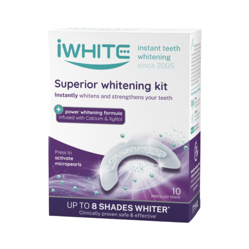 O iWhite Superior Branqueamento Dentes é um sistema de branqueamento dental profissional com 10 moldes personalizáveis. Fórmula avançada para eliminar manchas e clarear os dentes até 8 tons. Tratamento completo para um sorriso deslumbrante.