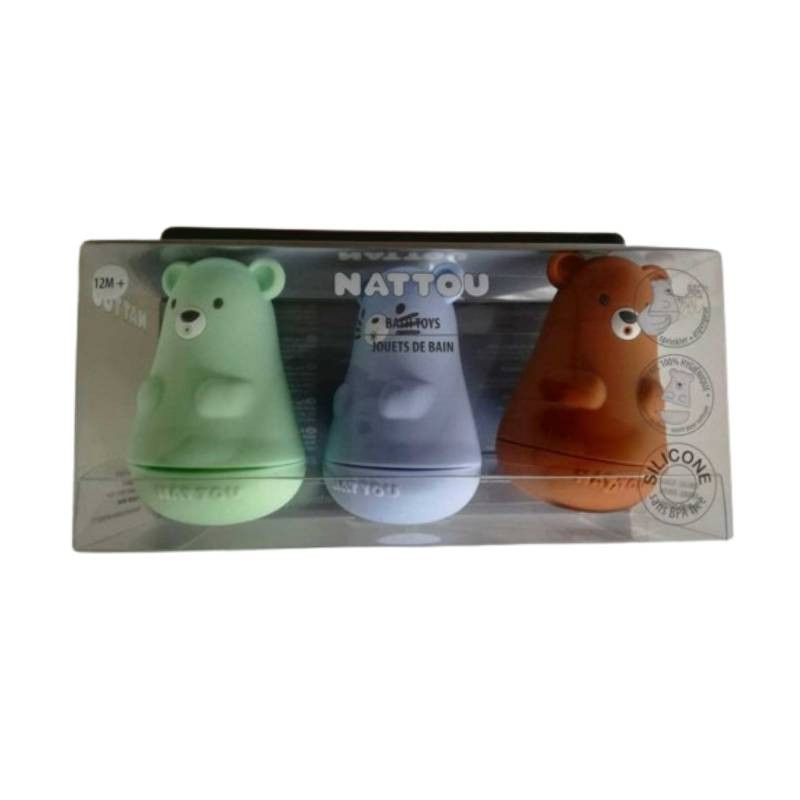 Nattou Bonecos Banho Verde/Azul/Castanho +12M é um brinquedo de banho feito de borracha natural que garante horas divertidas de brincadeira na banheira.