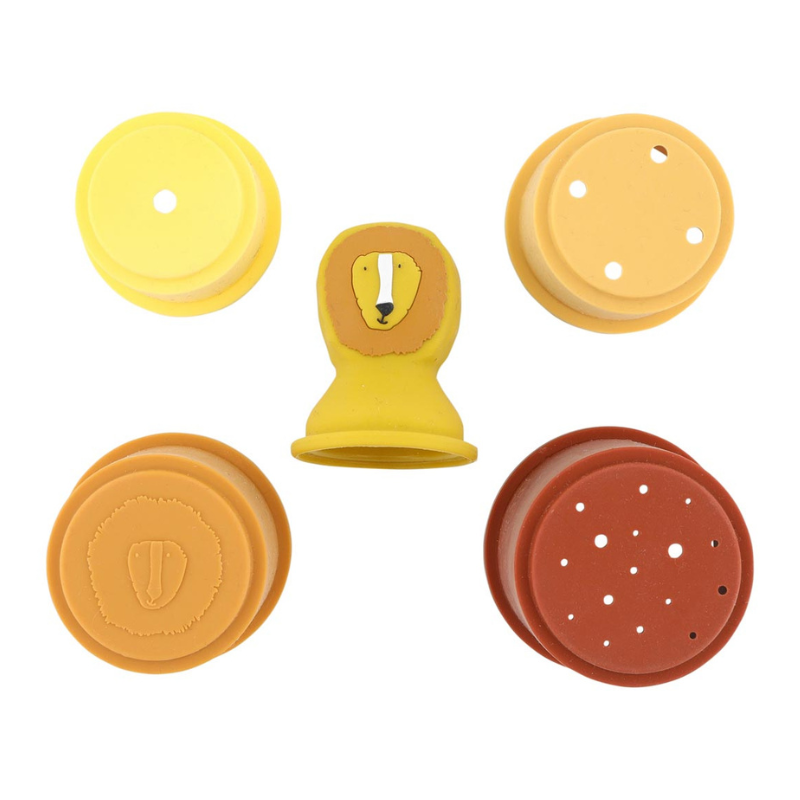 Feitos em silicone 100% de toque aveludado, estes copos são macios, flexíveis e seguros para as mãos do bebé. As suas cores suaves e o design delicado Mr. Lion convidam à brincadeira, enquanto as suas formas inteligentes escondem pequenos segredos que vão surpreender e encantar os mais pequenos.