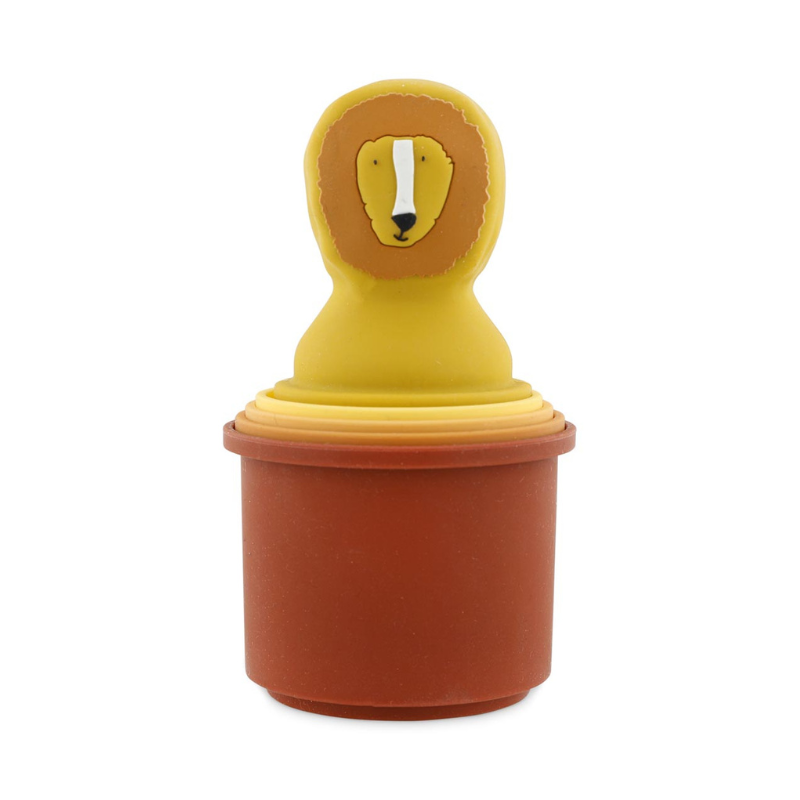 Conjunto de 5 copos empilháveis TRIXIE em silicone 100%. Com furos para jatos de água e copos fechados para encher/despejar. Inclui copo para enxaguar o cabelo. Desenvolve coordenação motora e causa-efeito. Idade 10m+. Seguro, sustentável e adorável.