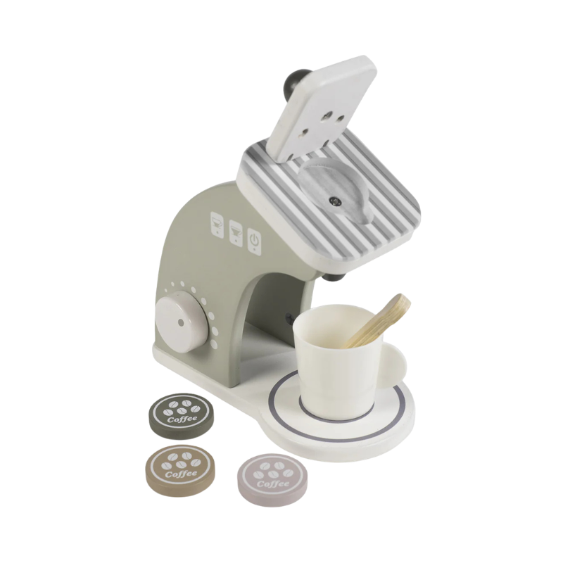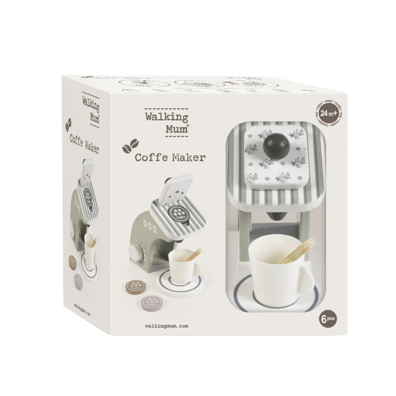 Transforma o momento de brincar numa experiência cheia de criatividade com a máquina de café de brincar em madeira da Walking Mum, um brinquedo educativo ideal para crianças a partir dos 24 meses.