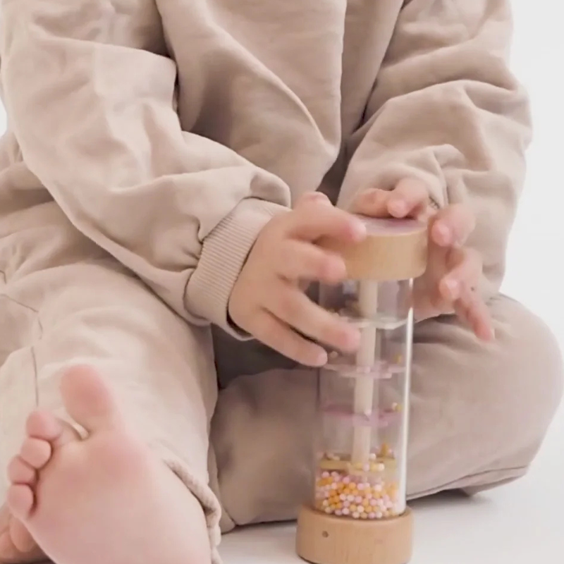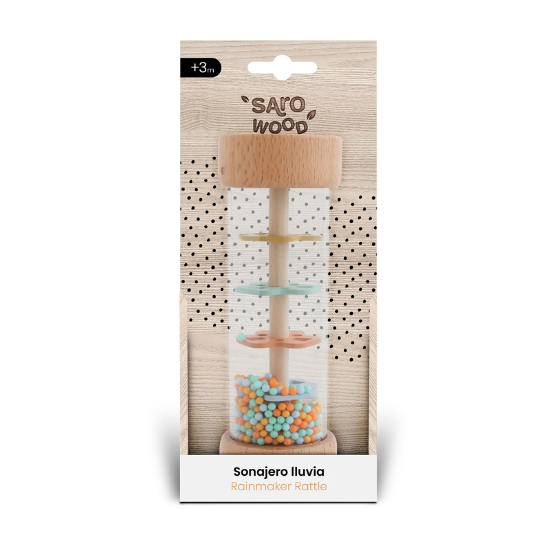 O Guizo de Chuva da Saro é um brinquedo sensorial pensado para entreter e estimular o desenvolvimento dos mais pequenos de forma suave e envolvente.