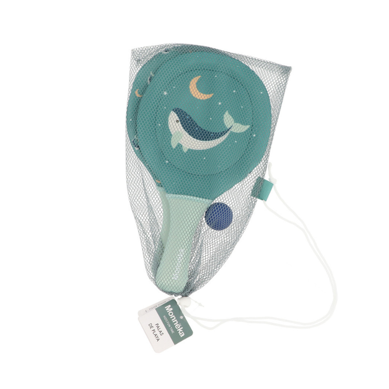Conjunto de raquetes de neoprene da coleção 2026 Monnëka com 2 raquetes e 1 bola. Leves, duráveis e confortáveis. Perfeitas para praia, piscina ou jardim. Limpeza com pano húmido. A partir dos 3 anos.