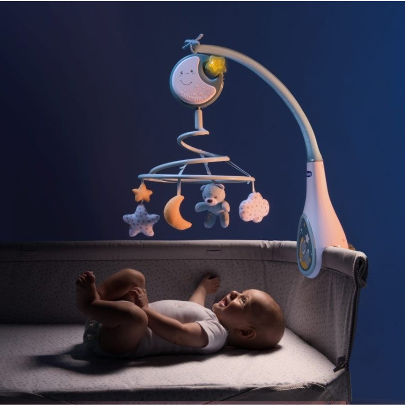 O Mobile Next2Dreams da Chicco foi pensado para ser o parceiro ideal do berço Chicco Next2Me, mas também pode ser facilmente instalado em outros berços e camas de madeira.