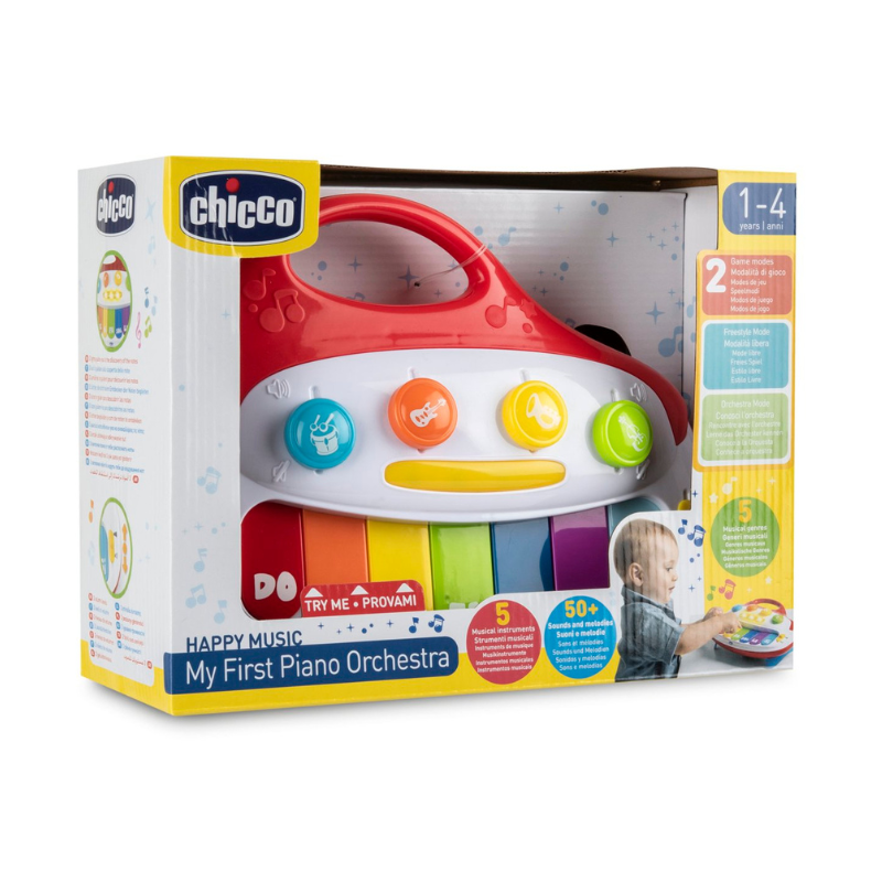 Apresentamos O Meu Primeiro Piano da Chicco, o instrumento musical perfeito para introduzir o teu pequeno maestro ao mundo da música! Com 7 teclas coloridas que correspondem a notas musicais reais, este piano educativo oferece uma experiência musical completa e adaptada a crianças dos 1 aos 4 anos.