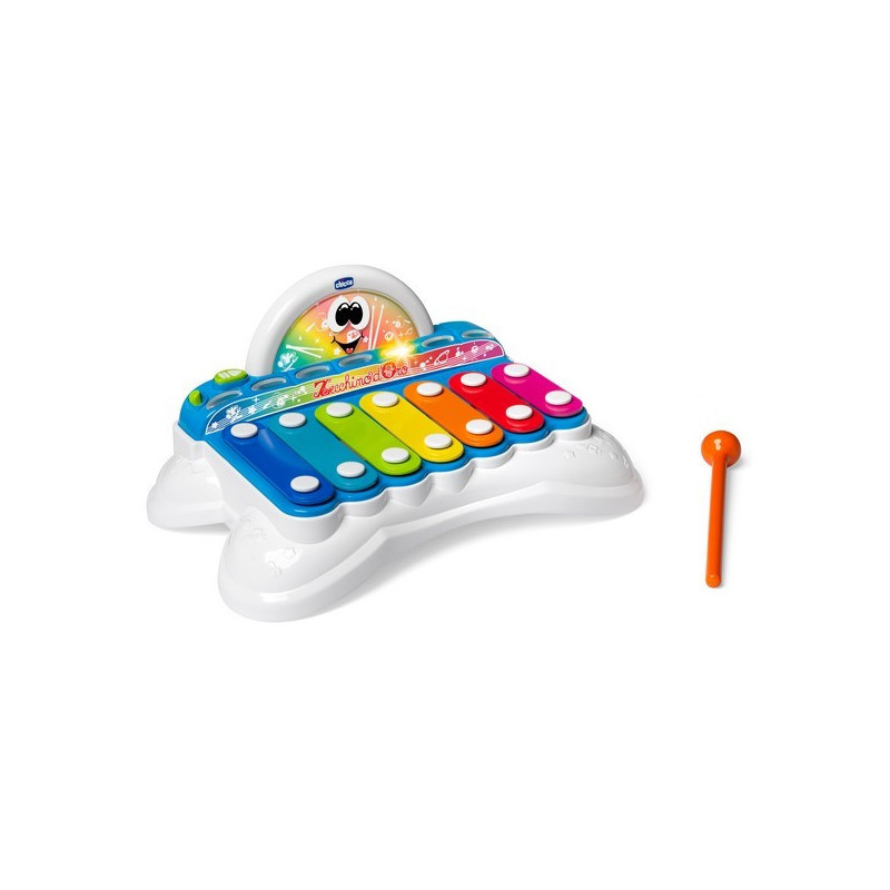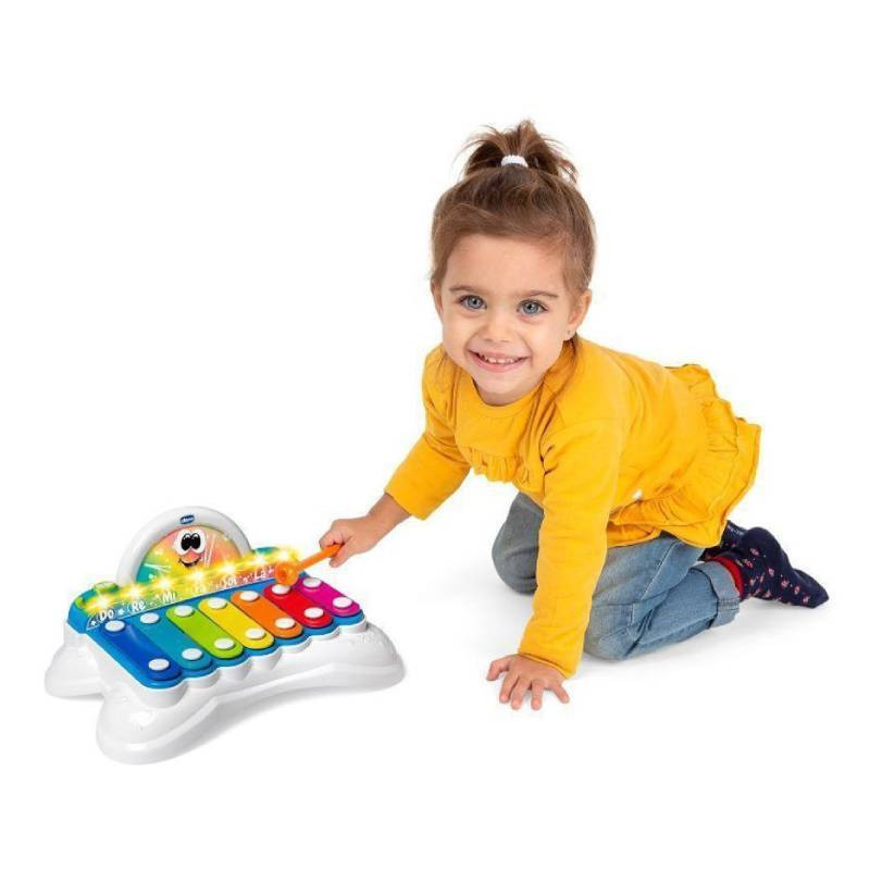 Chicco Flashy O Xilofone Musical 1-4A é um brinquedo que ensina as notas musicais, a escala musical e a sequência de sons.