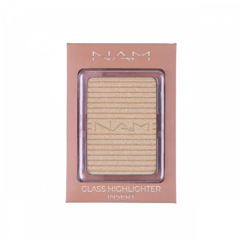 NAM Cosmetics Glass Highlighter Blister Golden Beige 08 é uma recarga compatível com pó iluminador NAM Cosmetics Glass Highlighter Golden Beige ultra sedoso que ilumina e suaviza visivelmente a pele para um brilho saudável e sem esforço.