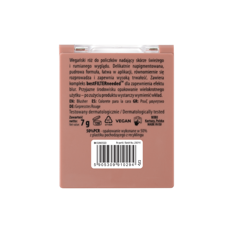 Realça a tua beleza natural com o Touch Color Blusher 04 Sunkissed, a sua fórmula aveludada oferece acabamento acetinado, disfarça imperfeições e hidrata a pele. Com embalagem ecológica e reutilizável, é uma escolha consciente e prática para o teu dia a dia.