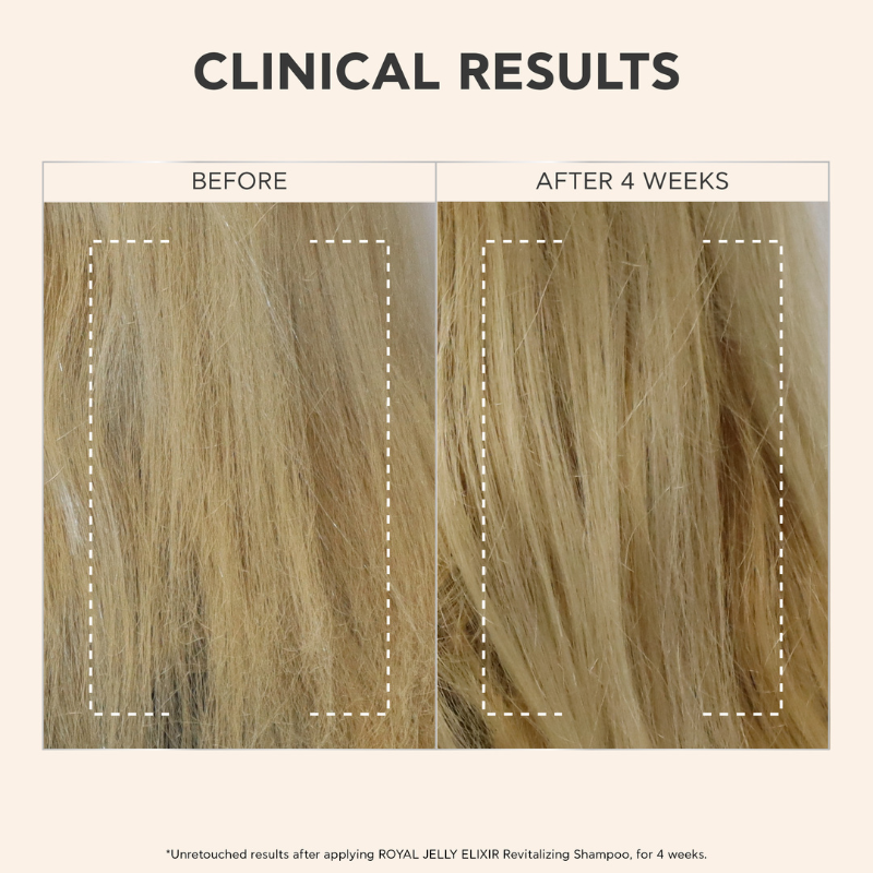 Formulado com 10% de Geleia real, devolve a força e o volume ao cabelo fino e sem vida. Com 95% de ingredientes de origem natural, para um cabelo visivelmente mais denso e cheio de energia.