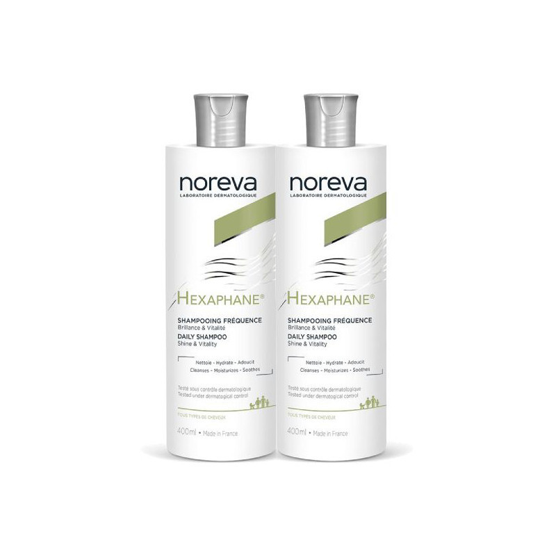 Noreva Hexaphane Champô Frequência Duo é composto por duas embalagens 400ml. Noreva Hexaphane Champô Frequência é um cuidado de limpeza suave, de uso diário, indicado para todo o tipo de cabelo, especialmente do couro cabeludo sensível.
