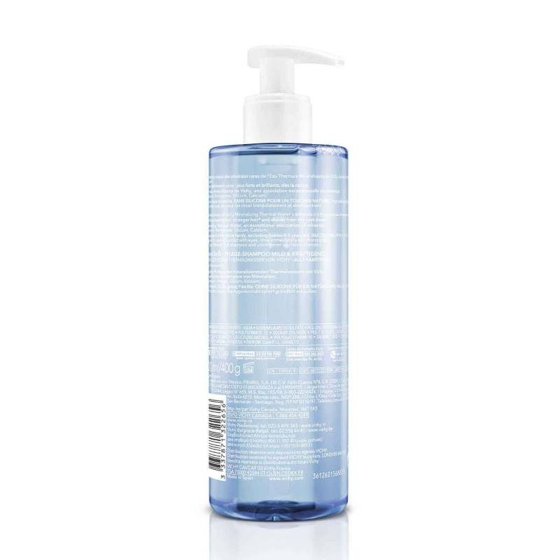 Dercos Champô Mineral Suave 400ml delicado de uso diário para toda a família utiliza Água Termal Mineralizante Vichy rica em minerais raros para um cabelo visivelmente mais saudável, brilhante e forte da raiz até às pontas.