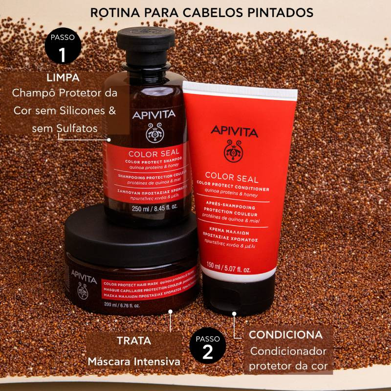 Apivita Máscara Capilar Protetora da Cor 200ml desenvolvido para as necessidades de cabelos pintados e com nuances, sela e realça a intensidade da cor, ao mesmo tempo que oferece um brilho irresistível.