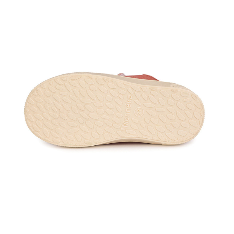 Sapatilhas de lona infantis Monnëka, design barefoot com drop zero, sola larga e flexível. Fecho em velcro, palmilha removível. 100% algodão respirável. Lavagem em água fria.