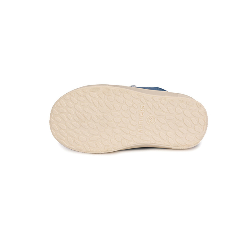 As Sapatilhas de Lona da Monnëka foram pensadas para os pés que estão a crescer. Sola larga, zero queda, flexível como poucas. A criança apoia o pé como se estivesse descalça – mas com a proteção e o conforto de um calçado feito a pensar nela.