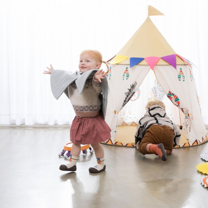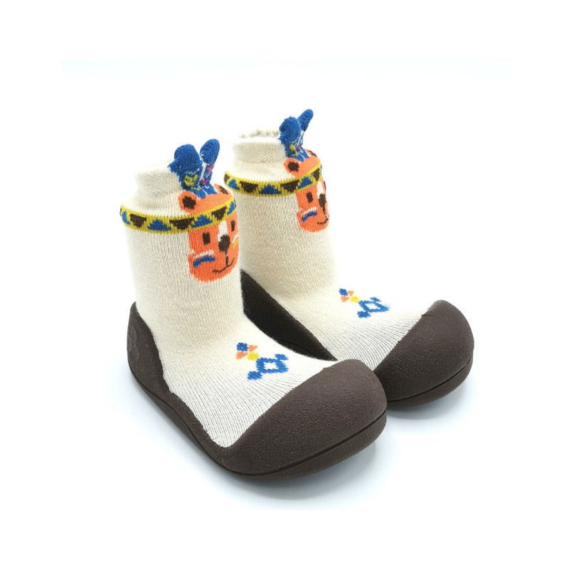 Attipas Indian é um sapato de bebé totalmente responsável e ergonómico projetado com base em uma meia e uma sola antiderrapante que se ajusta completamente ao pé do bebé como se fosse uma segunda pele. Totalmente flexível, com biqueira larga projetada para dar aos bebés a liberdade de movimentos dos pés e dos dedos, o que é essencial para o correto desenvolvimento dos pés.
