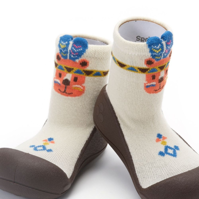 Attipas Indian é um sapato de bebé totalmente responsável e ergonómico projetado com base em uma meia e uma sola antiderrapante que se ajusta completamente ao pé do bebé como se fosse uma segunda pele.