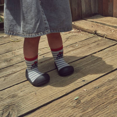 Attipas Funny Halloween Cinza e Vermelho Tam. 19 é um sapato de bebé totalmente responsável e ergonómico projetado com base em uma meia e uma sola antiderrapante que se ajusta completamente ao pé do bebé como se fosse uma segunda pele.