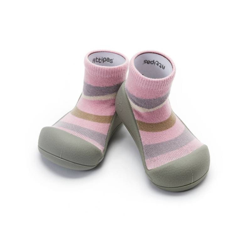 Attipas Dinosaur Pink é um sapato de bebé barefoot e ergonómico projetado com base em uma meia e uma sola antiderrapante que se ajusta completamente ao pé do bebé como se fosse uma segunda pele.