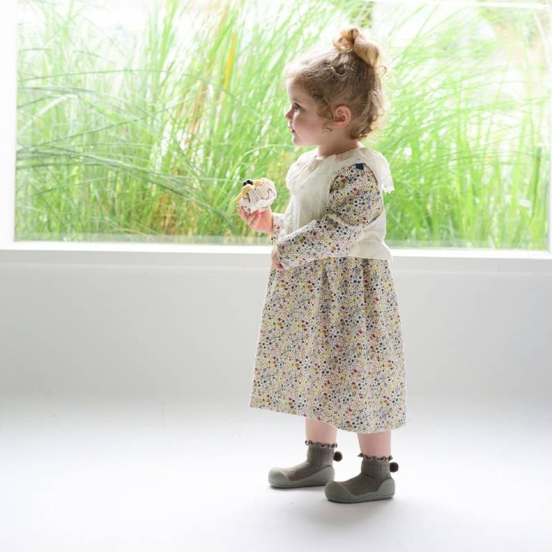 Attipas Pom Pom Khaki Tam. 19 é um sapato de bebé em caqui com pompom nas costas. Ergonómico e base em uma meia e uma sola antiderrapante que se ajusta completamente ao pé do bebé como se fosse uma segunda pele.