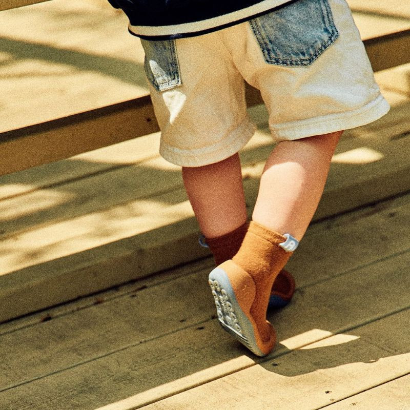 Attipas Label Camel é um sapato de bebé barefoot e ergonómico projetado com base em uma meia e uma sola antiderrapante que se ajusta completamente ao pé do bebé como se fosse uma segunda pele.