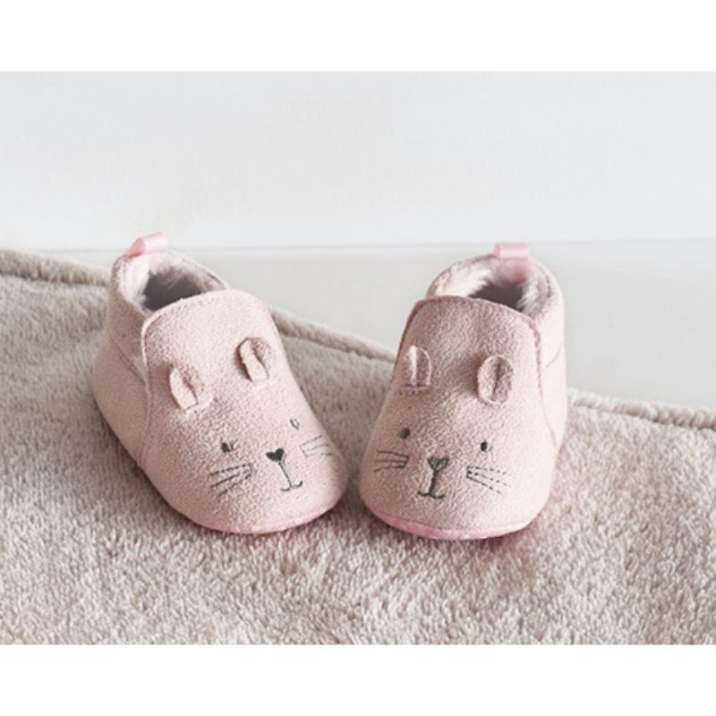 Doudou Pantufas Rato Rosa são extremamente macias e perfeitas para aquecer os pés do bebé.