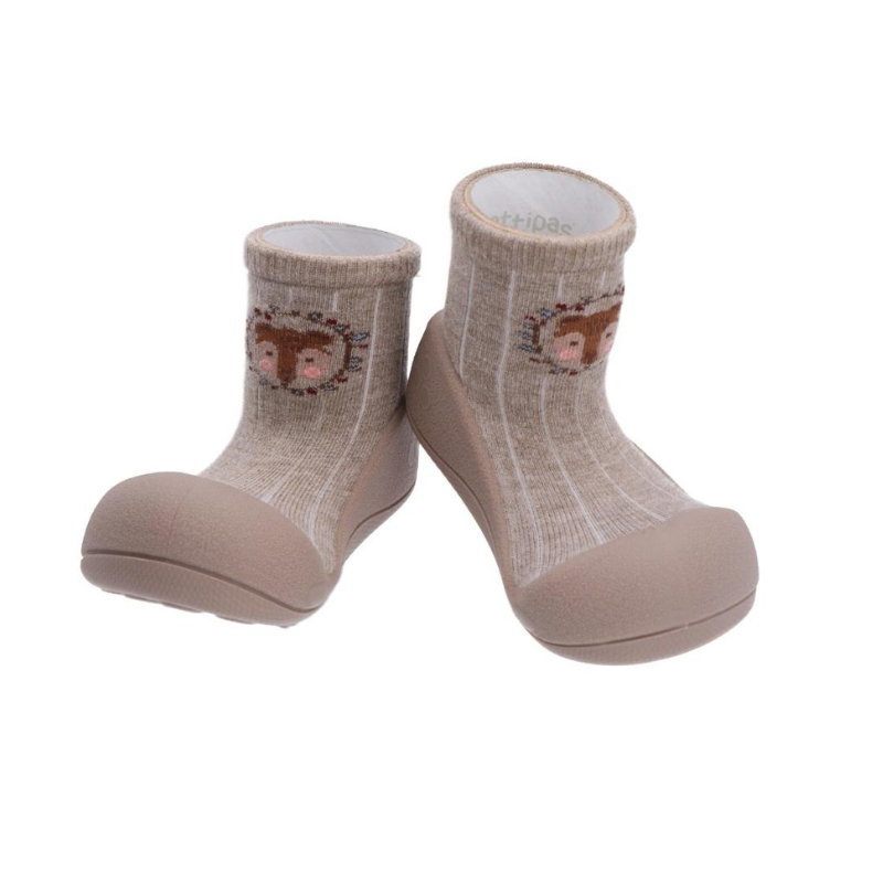Attipas Animal Beige é um sapato de bebé barefoot e ergonómico projetado com base em uma meia e uma sola antiderrapante que se ajusta completamente ao pé do bebé como se fosse uma segunda pele.