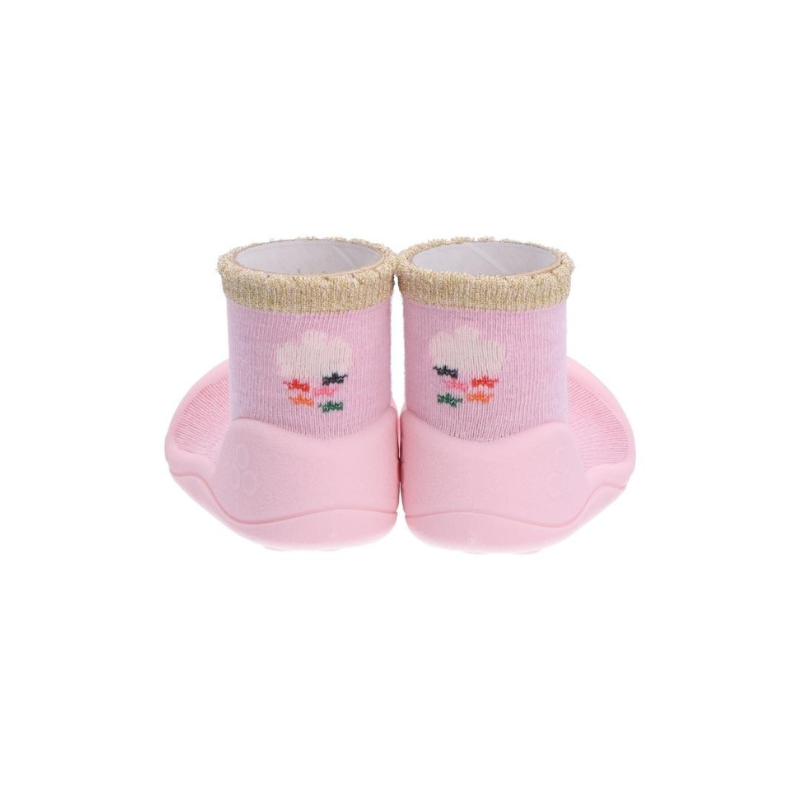 Attipas Cherry Rosa Tam. 21.5 é um sapato de bebé com meias caneladas para dar cor a esta estação, sola bicolor definida no tom da meia e base off-white.