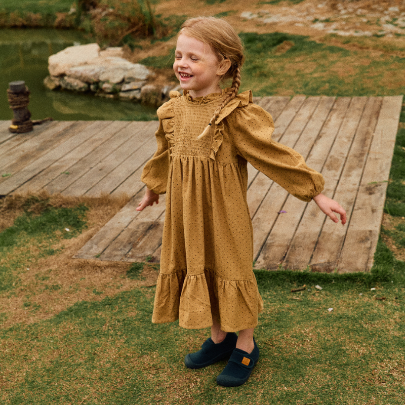 - Biqueira larga e sola plana: Estimula o desenvolvimento natural dos pés e dos movimentos.